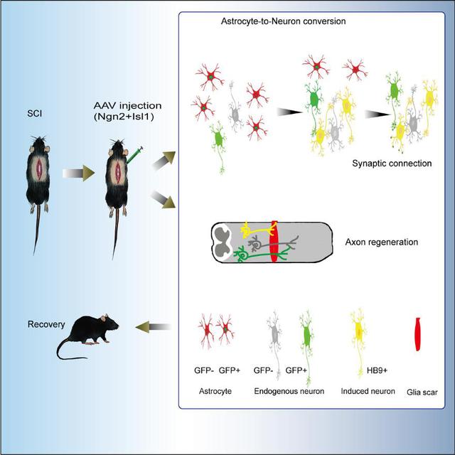 成年哺乳动物脊髓在损伤后自我修复能力极为有限,尤其是神经再生能力不足,成为功能恢复的主要障碍。该研究创新性地利用CRISPRa基因编辑技术,在体内激活内源转录因子Ngn2与Isl1,成功将反应性星形胶质细胞转化为具有功能的神经元。通过谱系追踪技术,研究团队确认这些新生神经元来源于星形胶质细胞,而非残留神经元的增殖。